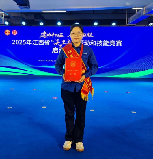 在2024年江西省“天工杯”長江大保護勞動和技能競賽中,胡孝備參加了水質檢測項目。在理論考核和實操檢測兩個環節中,她憑借扎實的專業功底和出色的臨場發揮,從全省眾多選手中脫穎而出,以水質化驗檢測項目總分第一的好成績摘得桂冠。因成績優異,胡孝備被江西省總工會授予2024年“天工杯工匠”榮譽稱號。